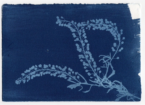The work of Anna Atkins informs and inspires Veronica Siehl’s art practice. Using cyanotype, Veronica investigates shadow as subject, medium, and metaphor. Botanicals, textiles, hand painted films—at times in combination with poetry and monoprinting—are used to generate prints that explore the shadow’s ability to defy time by being simultaneously present and absent.