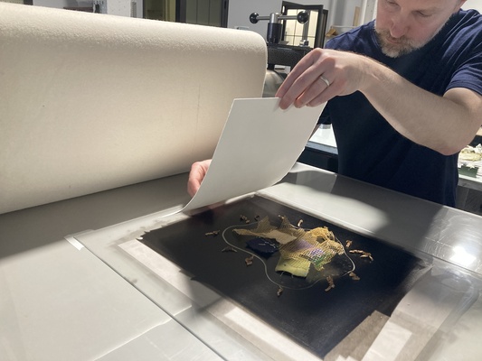 This Process Spotlight is a great way to get acquainted with Campfire Printing Press while exploring an approachable process. We’ll demonstrate how to combine ink and found materials on plexiglass under pressure to produce a range of aesthetic possibilities.